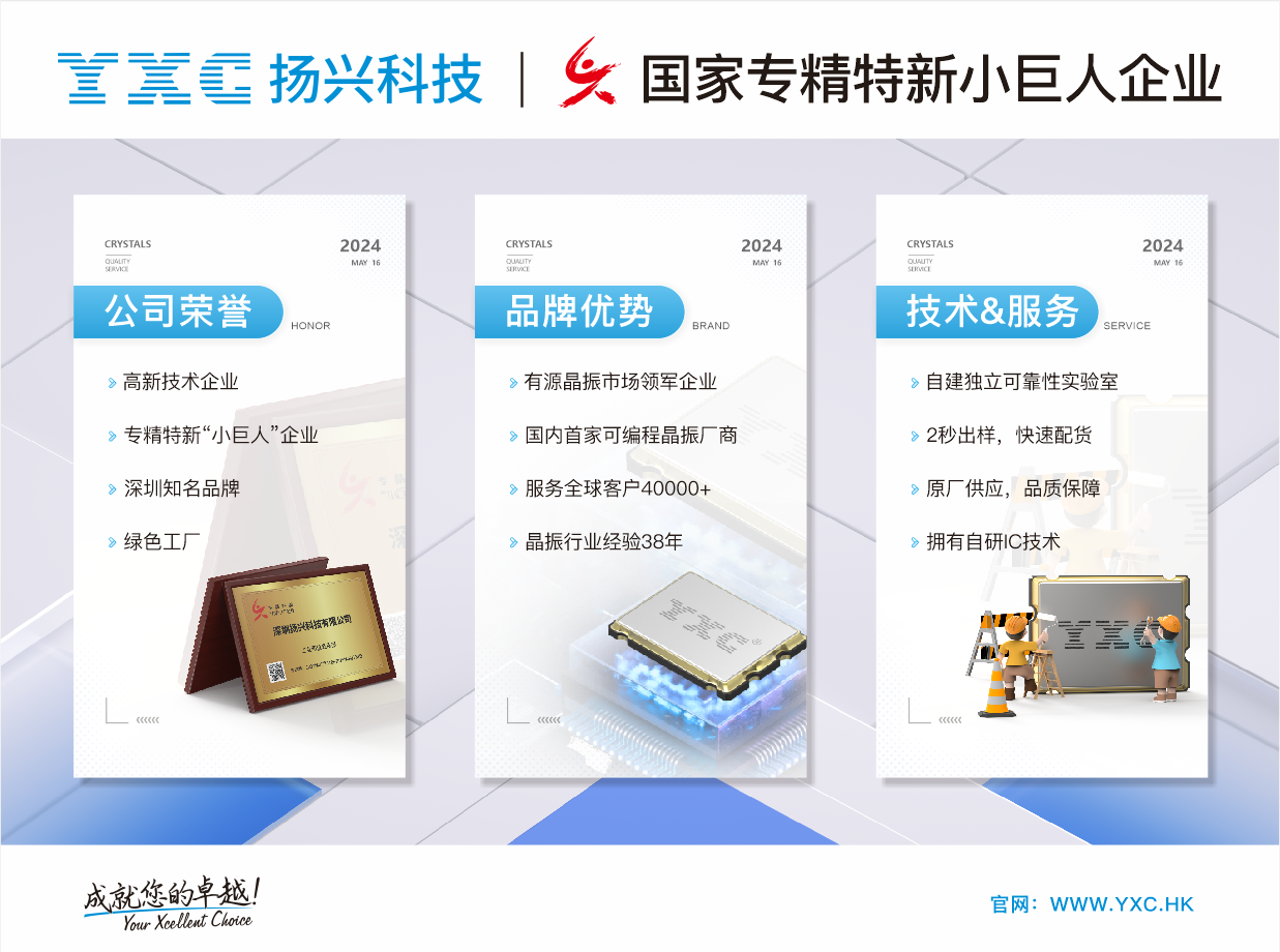 揚(yáng)興科技(YXC)專注晶振已38年,我們擁有先進(jìn)的測試儀器和經(jīng)驗(yàn)豐富的銷售技術(shù)團(tuán)隊(duì),專注于可編程晶振、石英振蕩器、石英晶體諧振器、時(shí)鐘晶振、陶瓷諧振器、TCXO溫補(bǔ)晶振等系列產(chǎn)品的研發(fā)與生產(chǎn)。揚(yáng)興科技的晶振產(chǎn)品廣泛應(yīng)用于光模塊、智能網(wǎng)卡、5G通信、AI服務(wù)器、3C數(shù)碼、智能家居、ADAS、車載影音、醫(yī)療、工業(yè)控制等眾多領(lǐng)域,為社會(huì)各行各業(yè)的智能化發(fā)展提供了堅(jiān)實(shí)的支撐。