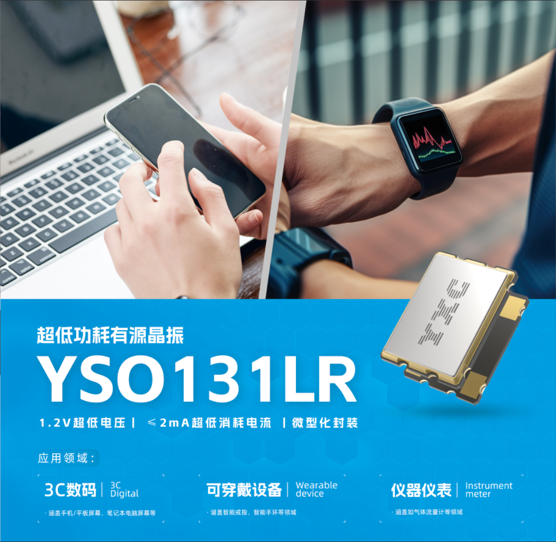 二、YSO131LR 超低功耗有源晶振——專為3C數(shù)碼、可穿戴設(shè)備及儀器儀表設(shè)計(jì)。其1.2V超低電壓與≤2mA的超低消耗電流,實(shí)現(xiàn)了能源效率的新突破,微型化封裝則讓空間利用更加極致。在追求極致輕薄與長(zhǎng)效續(xù)航的當(dāng)下,YSO131LR是理想之選。