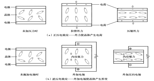 壓電效應(yīng):若在石英晶體的兩個電極上加上一電場,晶片就會產(chǎn)生機械變形。反之,若在晶片的兩側(cè)施加機械壓力,則在晶片相應(yīng)的方向上將產(chǎn)生電場,這種物理現(xiàn)象稱為壓電效應(yīng)。