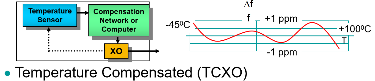 溫度傳感器實時監(jiān)測環(huán)境溫度,補償網(wǎng)絡(luò)或計算器根據(jù)溫度變化計算出所需的頻率補償量,系統(tǒng)對水晶振蕩器的輸出頻率進行動態(tài)調(diào)整。
