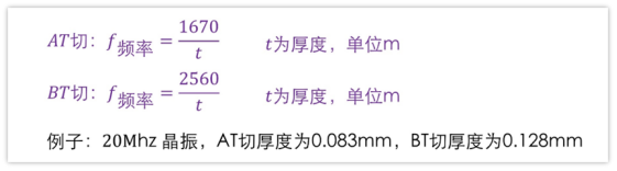 可以簡(jiǎn)單計(jì)算出兩種切割方式的頻率計(jì)算公式,分別是AT切和BT切。