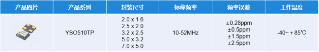 1、通用系列YSO510TP:在-40~85℃的溫度范圍內(nèi),穩(wěn)定性可達(dá)±2.5PPM,具備多種尺寸。