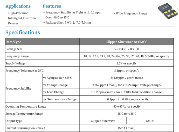 YXC推薦三款溫補(bǔ)晶振(TCXO)產(chǎn)品,用以滿足不同方案需求: