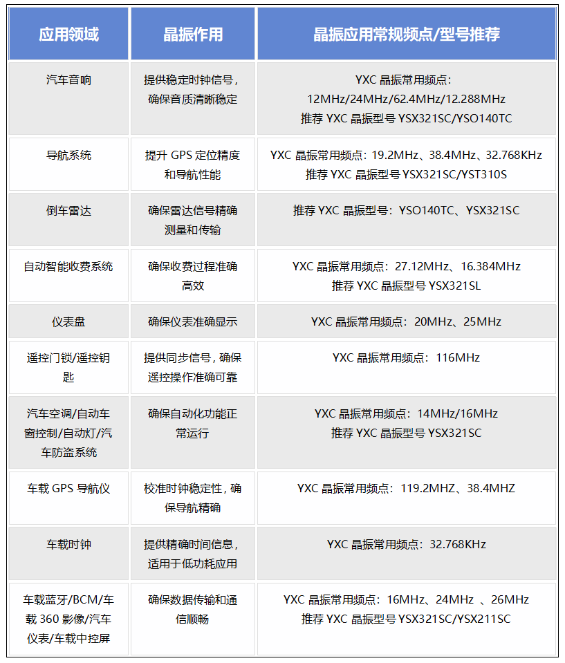 三、YXC汽車電子晶振主要應(yīng)用